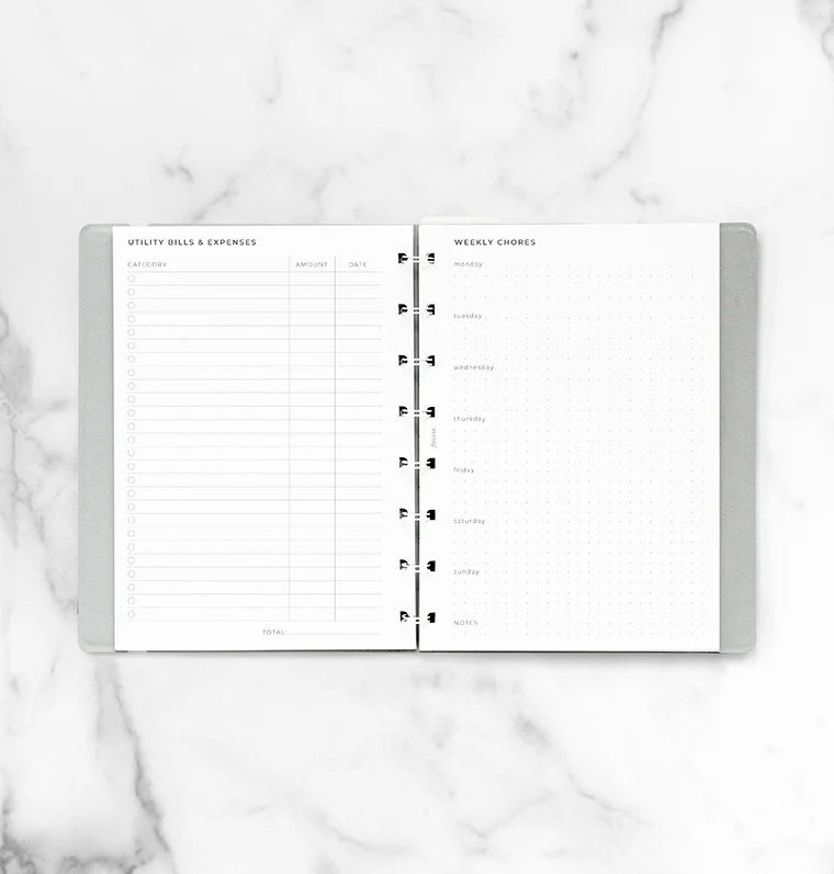 Discover the ultimate tool for keeping your home in order! Always feel prepared for the week ahead with our household planner refill, featuring pages for weekly chores, cleaning trackers, laundry reminders and never forget to take out the recycling again with the bin schedule.