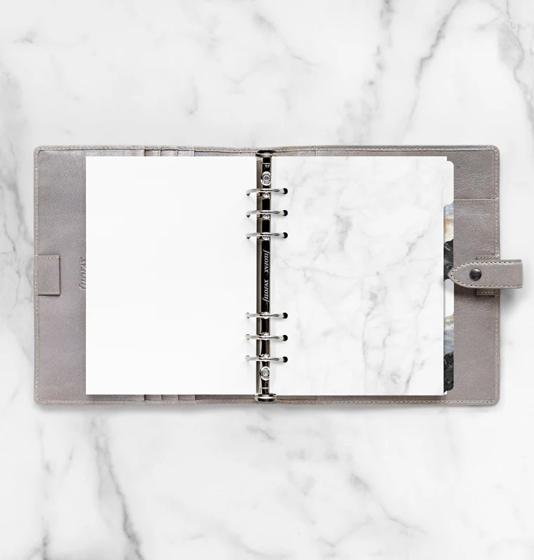 Six dividers in three stunning marble patterns to keep your thoughts organised in style. You can customise your dividers however you wish, using most pencils, ballpoint pens, markers or stickers. Compatible with your Filofax A5 Organisers or A5 Clipbook.