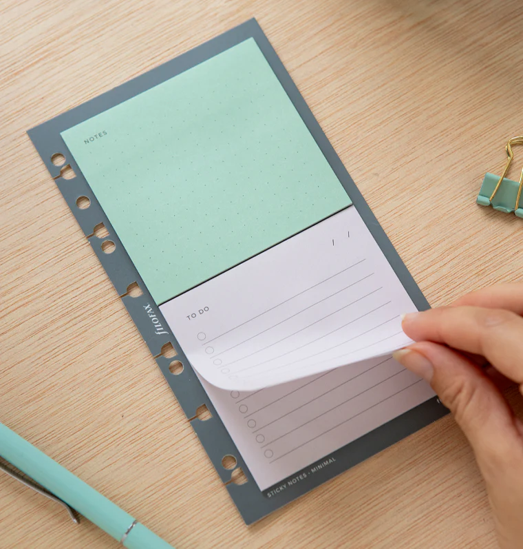 Add a sleek touch to your pages with this set of repositionable Minimal Sticky Notes - for plans on the go, little reminders and quick ideas. Compatible with A5/Personal Organisers and Clipbooks & A5/A4 Refillable Notebooks, each of these sets includes one pad for Notes and one pad for To Dos, with 25 sheets each. These minimal style Sticky Notes are a versatile addition to your stationery collection, blending seamlessly into any setup and complementing all leather and non-leather products.