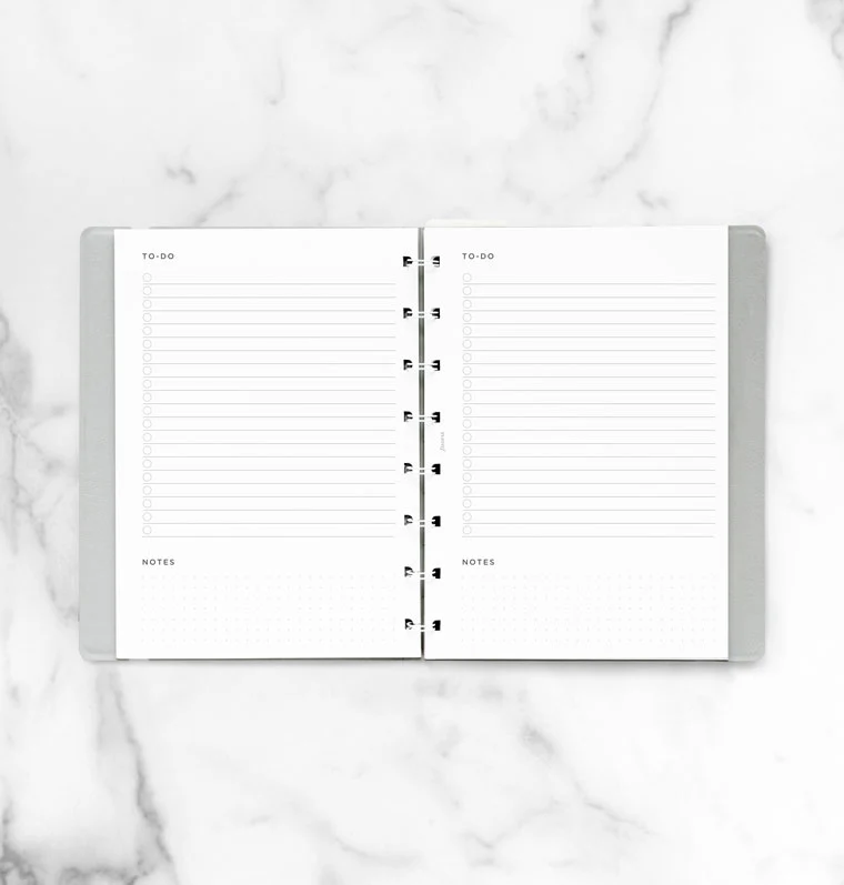Stay on top of daily chores and errands with this fun to-do refill designed in Minimal style. Give your reminders a home with the handy note section, designed for making life that little bit easier. Fountain pen friendly paper - 80 gsm. Compatible with your A5 Filofax refillable notebook.
