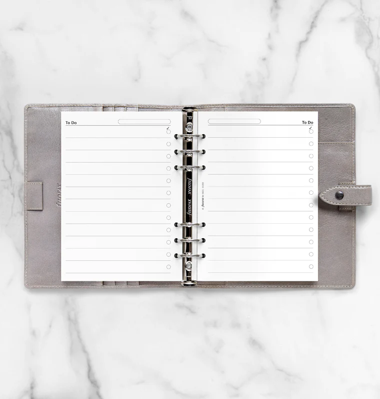 The ultimate planning accessory for your Filofax A5 organiser or Clipbook. Remember all those important tasks with our 'To do' refill featuring corresponding tick-box tracker. Contains 25 double-sided sheets.