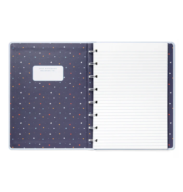 Feel empowered with our A5 refillable notebook from the Together Collection, featuring a unique cover designed to inspire young women. Includes lined, fountain pen friendly paper. Pages are repositionable and refillable, allowing you to build the notebook that truly fits your needs with our wide range of paper refills and accessories. Its white twin-wire binding enables the notebook to lay flat and the colour-coordinating elastic closure helps you keep everything in place.