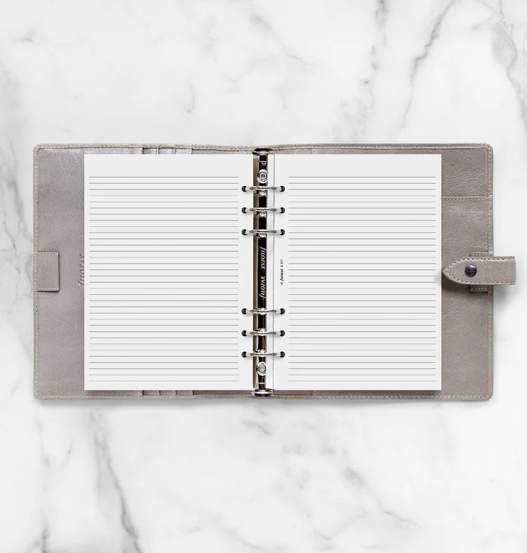 A white ruled notepad for your Filofax A5 organiser or A5 Clipbook. Can be attached to the rings or added to your organiser using the rear notepad slip pocket (select models only). Contains 50 sheets.